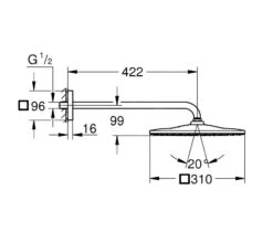 Grohe Rainshower – Hoofddouche 310 Mono Cube 9,5 L/min, 1 Straal, Plafondarm 142 Mm, Chroom 26566000