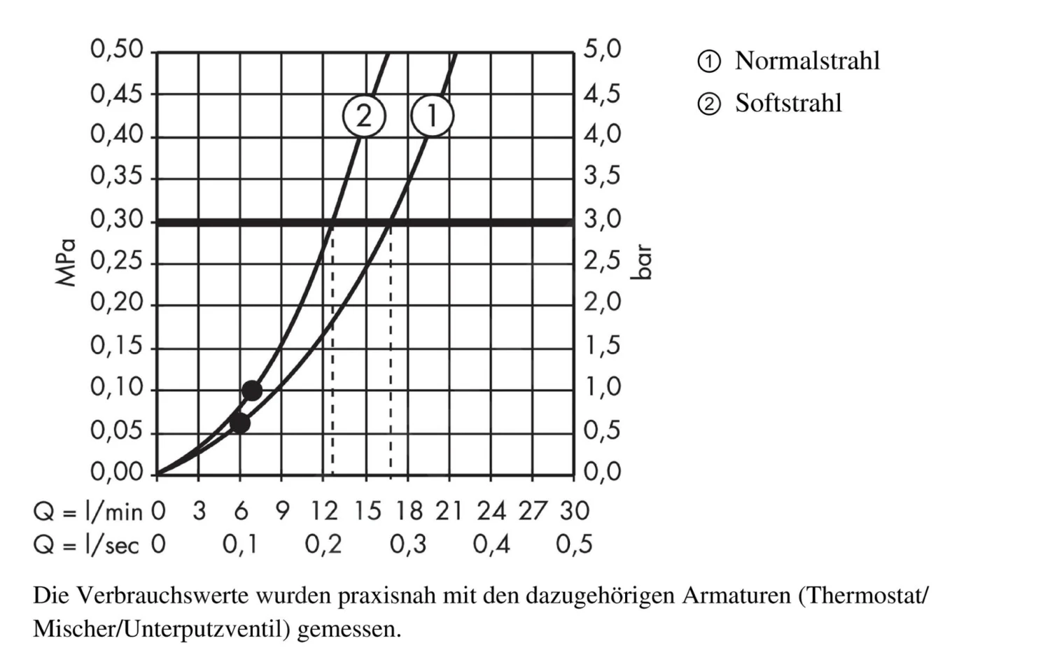 - maximale waterdoorstroom bij 0,3 MPa 12,4 l/min (Rain straal)