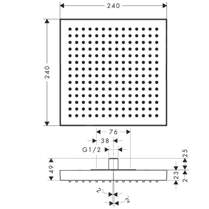 - afmetingen douchekop 240 x 240 mm