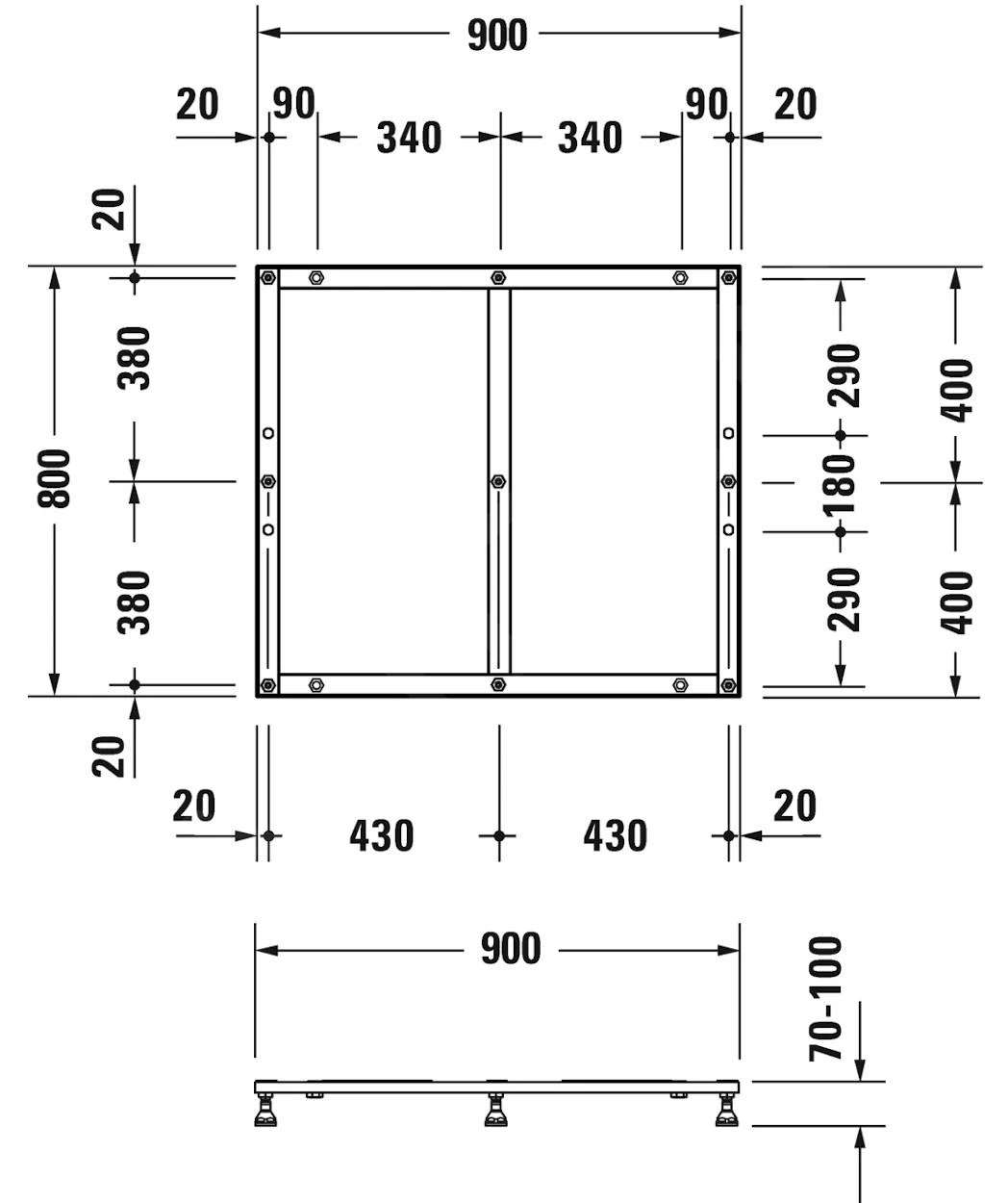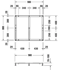 - voor douchebak 900 x 800 mm