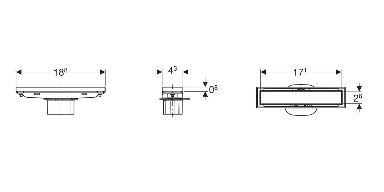 - douchegoot, verstelbaar in hoogte, door kantelen of verschuiven