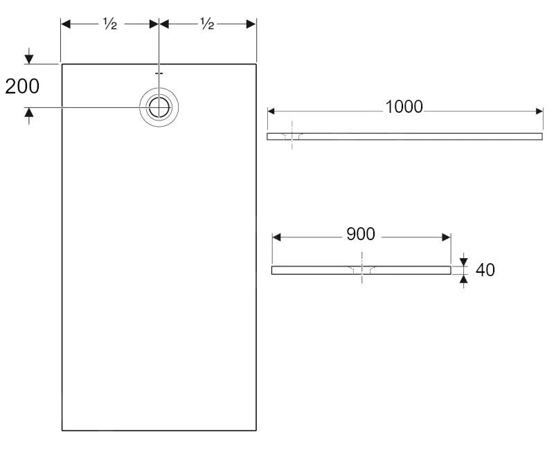 - douchebak voor vloerdiktes 10-25 cm (met poten voor ondersteuning tot het bovenste niveau van de afgewerkte vloer)