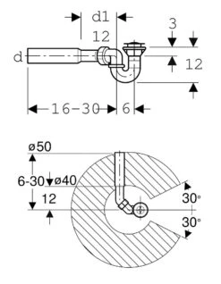 - afmetingen: d Ø 50 mm, d1 Ø 40 mm