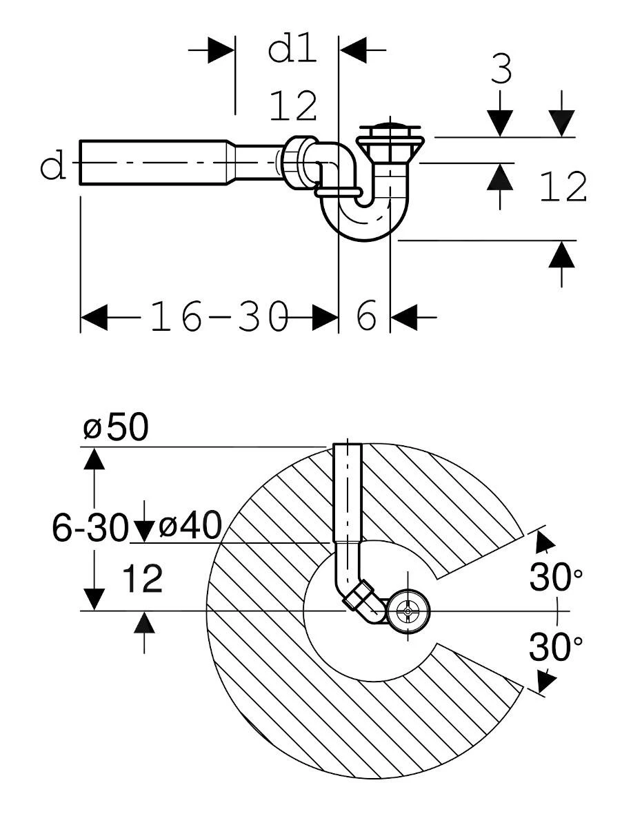 - voor douchebakken met een afvoergat van Ø 52 mm