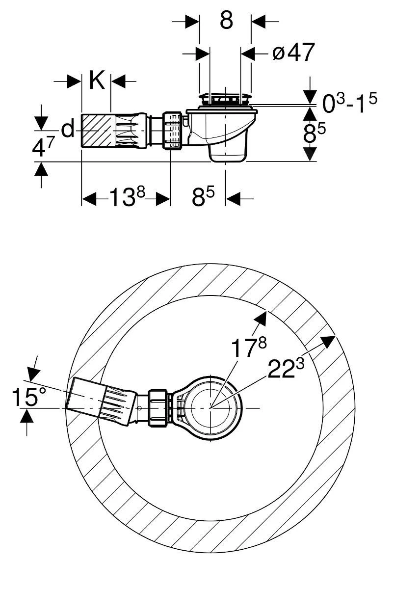 - voor douchebakken met een afvoergat van Ø 52 mm
