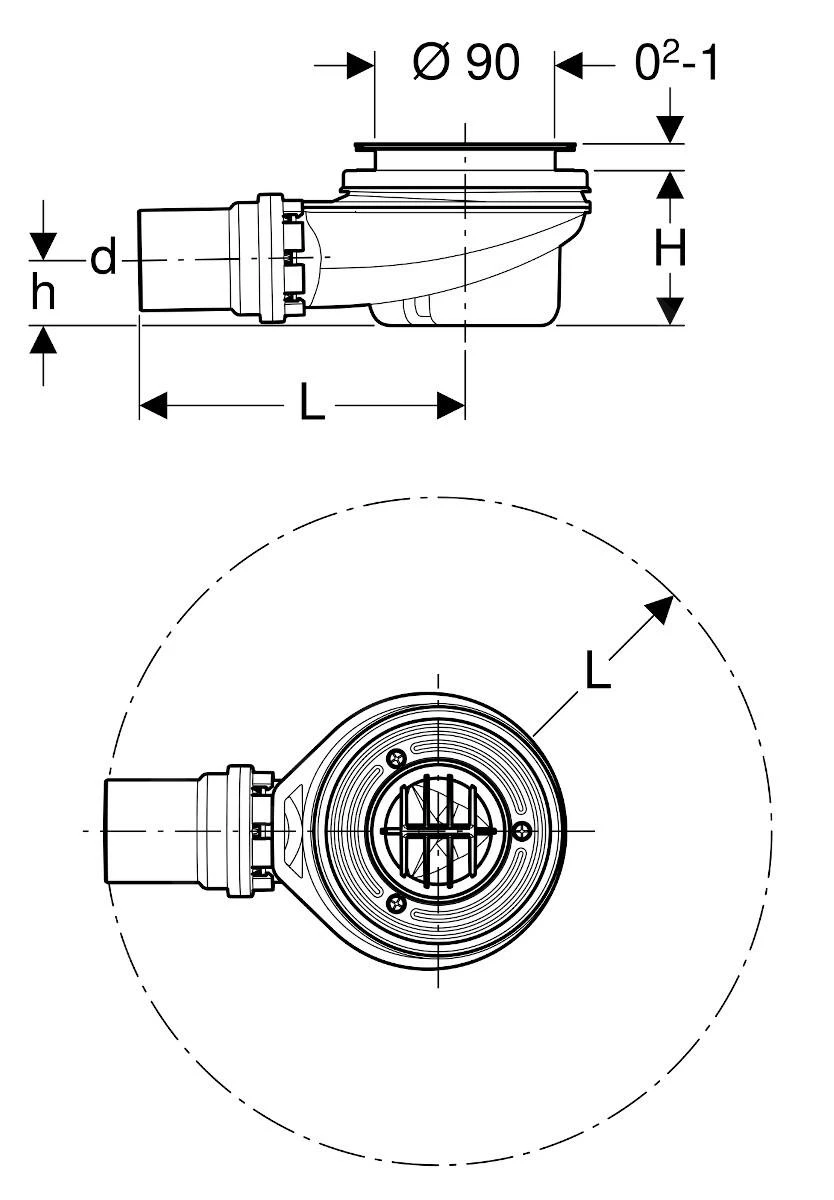 - voor douchebakken met een afvoergat van Ø 90 mm