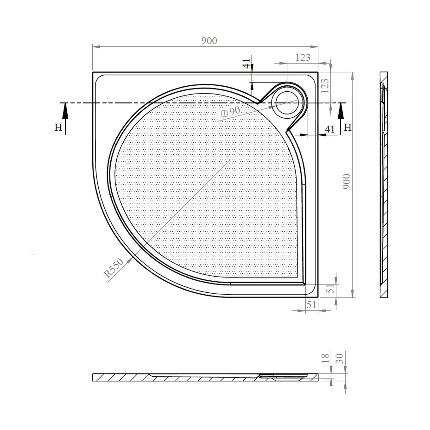 - afmetingen: 900 x 900 x 30 mm, R550