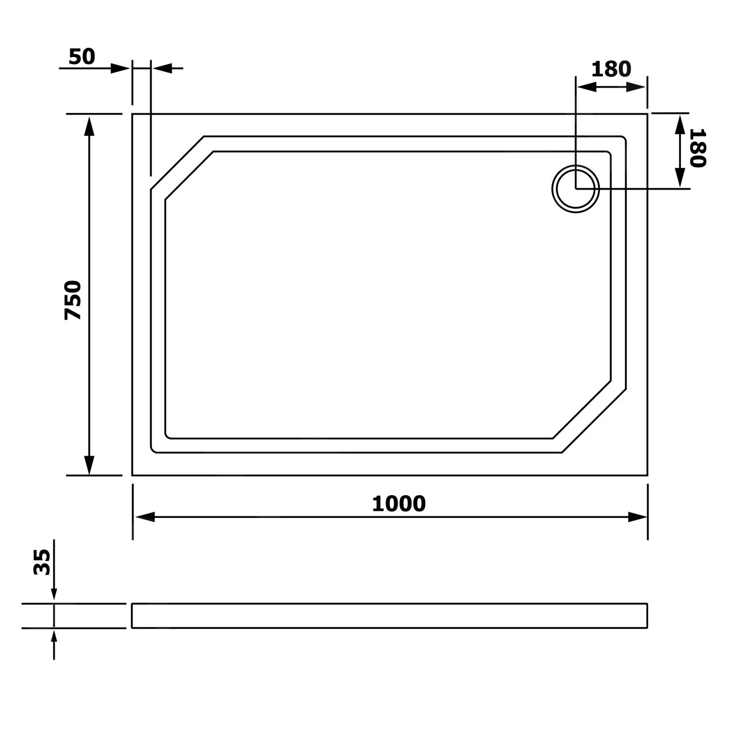 SARA rechthoekige douchebak van gegoten marmer, glad