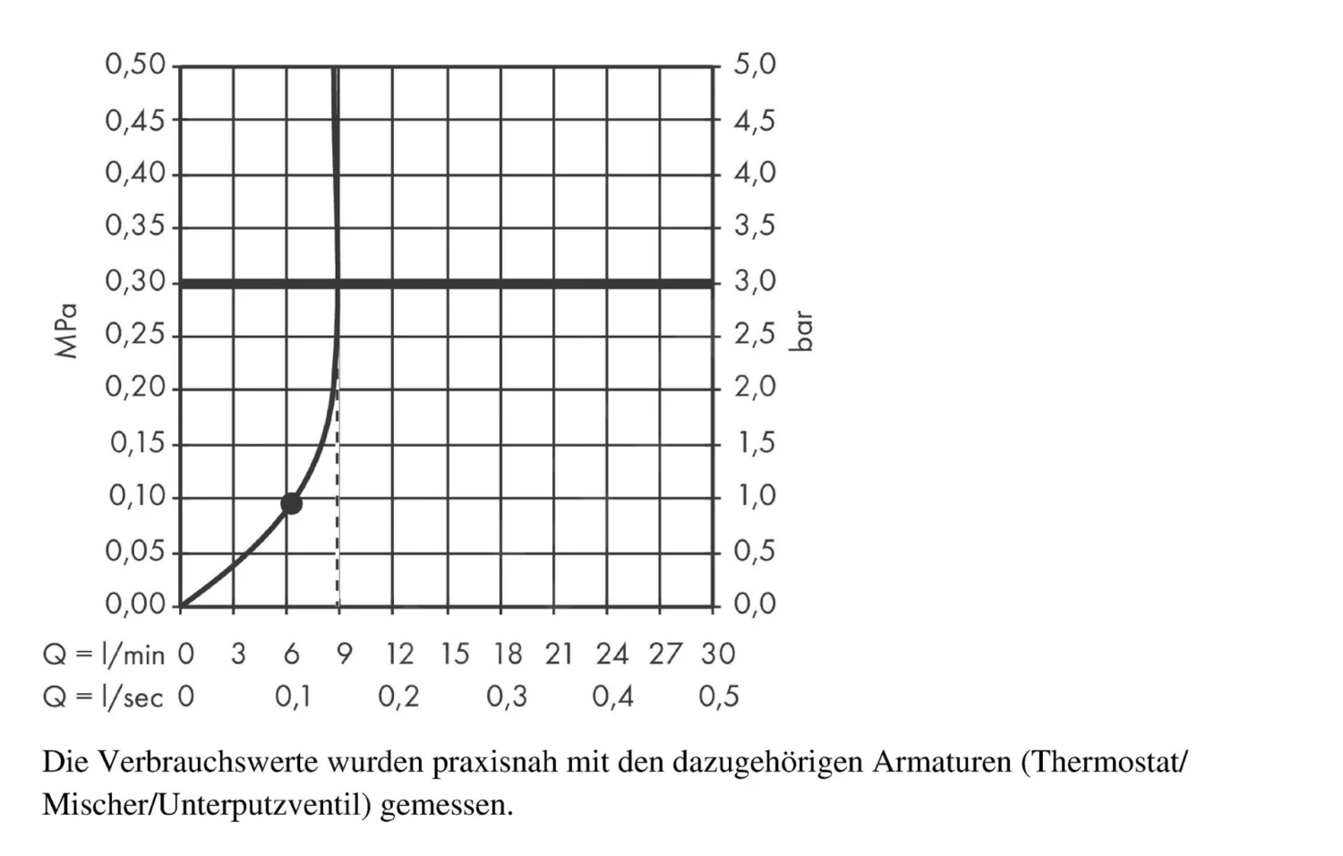 - min. stroomdruk: 0,1 MPa