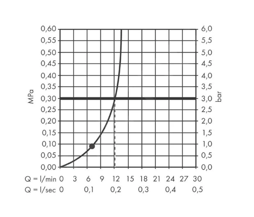 - maximale doorstroming bij 0,3 MPa: 12,3 l/min