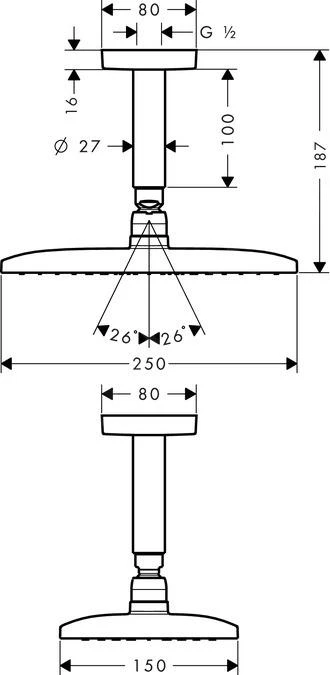 - douchearm lengte vanaf het plafond: 100 mm