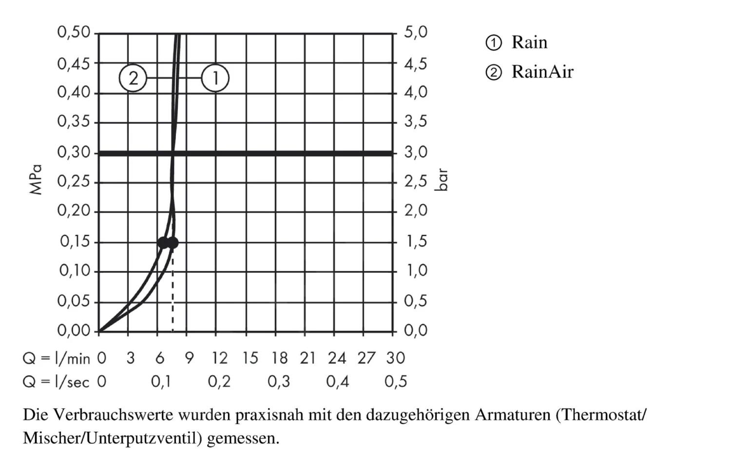 - doorstroming van de RainAir straal (bij 0,3 MPa): 9 l/min