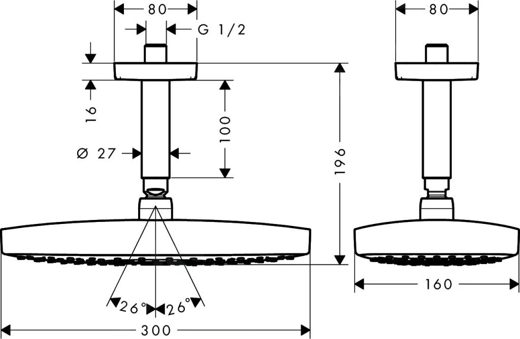 hoofddouche - twee varianten van oppervlakteafwerking douchedeel: