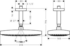 hoofddouche - twee varianten van oppervlakteafwerking douchedeel: