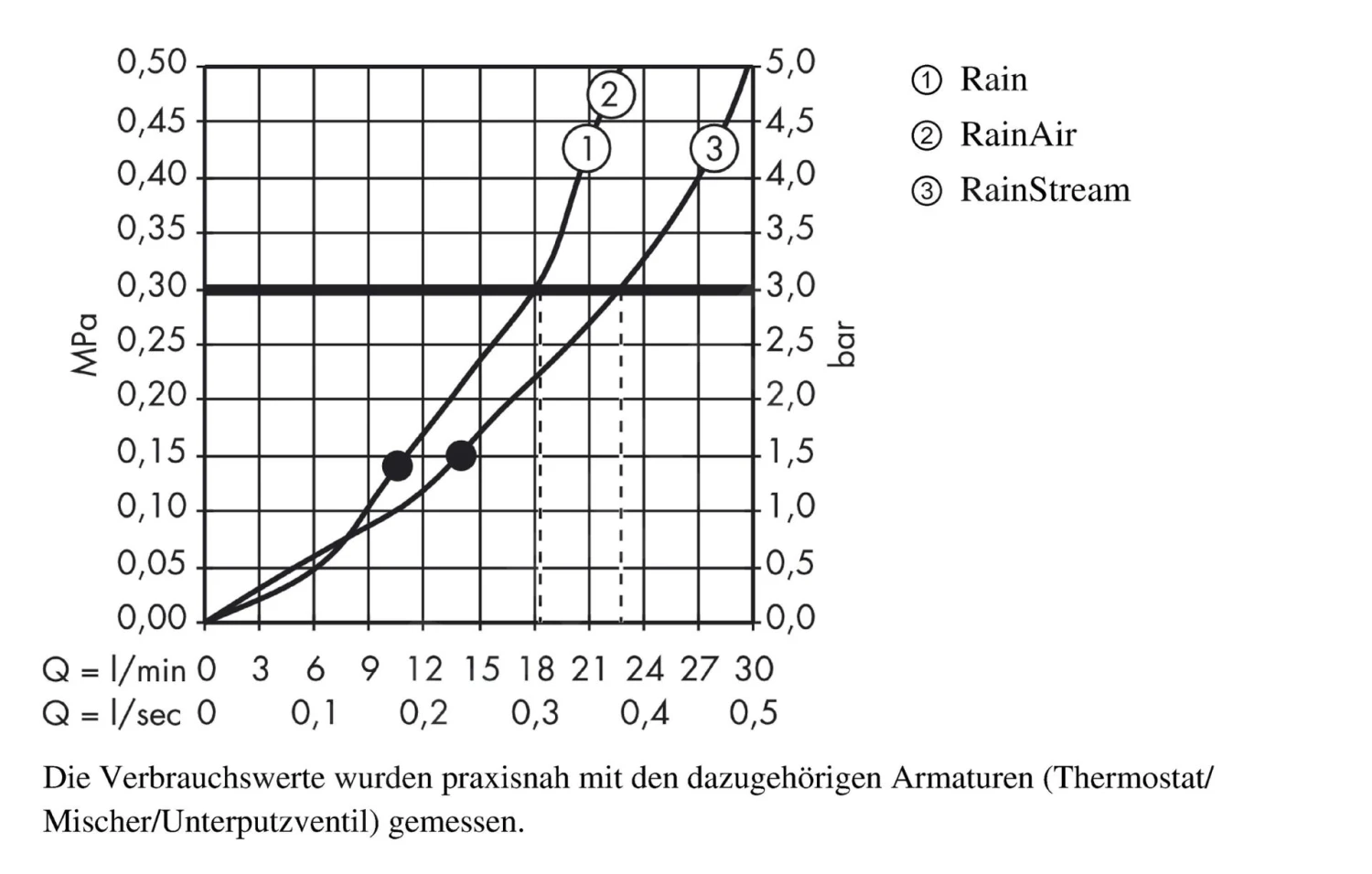 - doorstroming bij RainStream (bij 0,3 MPa): 22 l/min