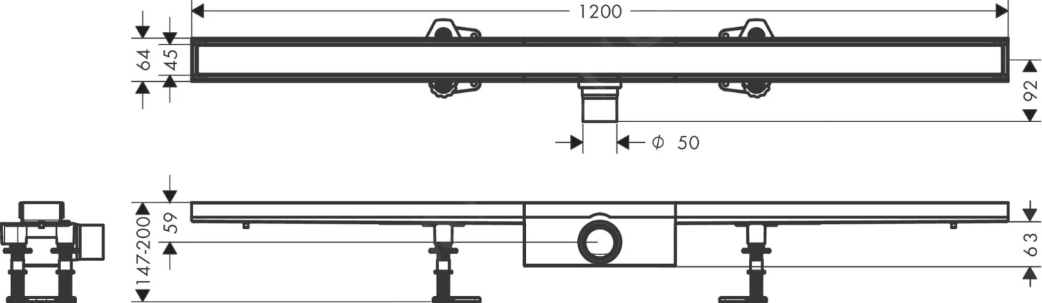- hoogte van de basisgarnituur: 50 mm