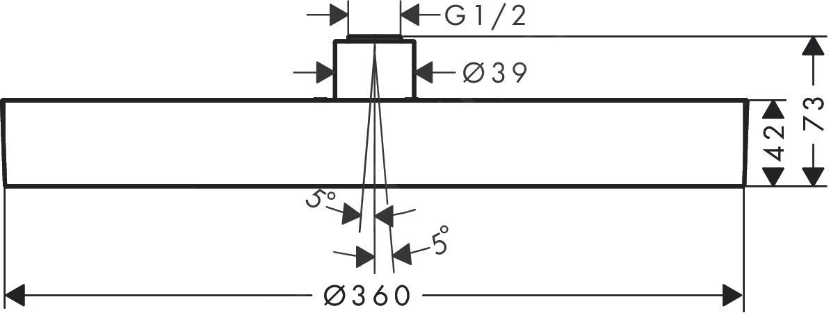 - kogelgewricht: instelbare hoek van de hoofddouche (2 × 5°)