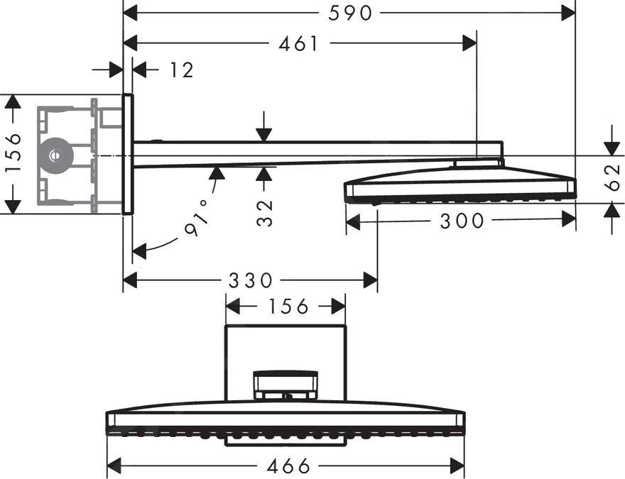 - grootte van de douchekop: 466 x 300 mm