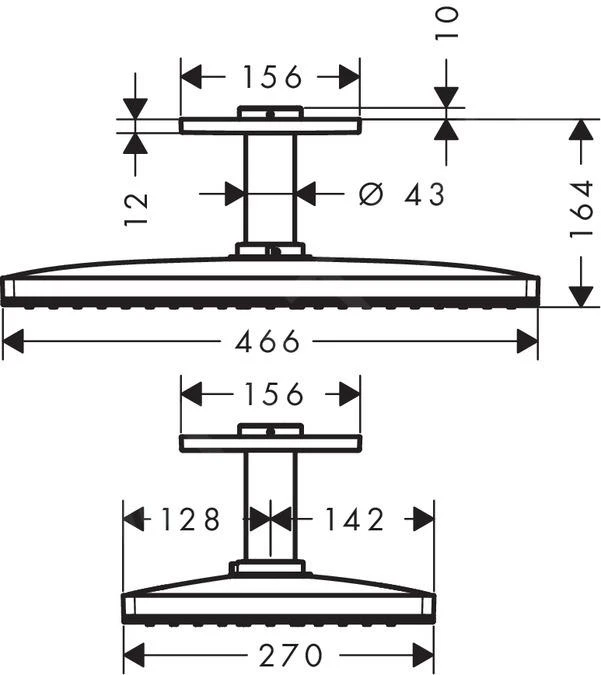 - grootte van de douchekop: 460 x 270 mm
