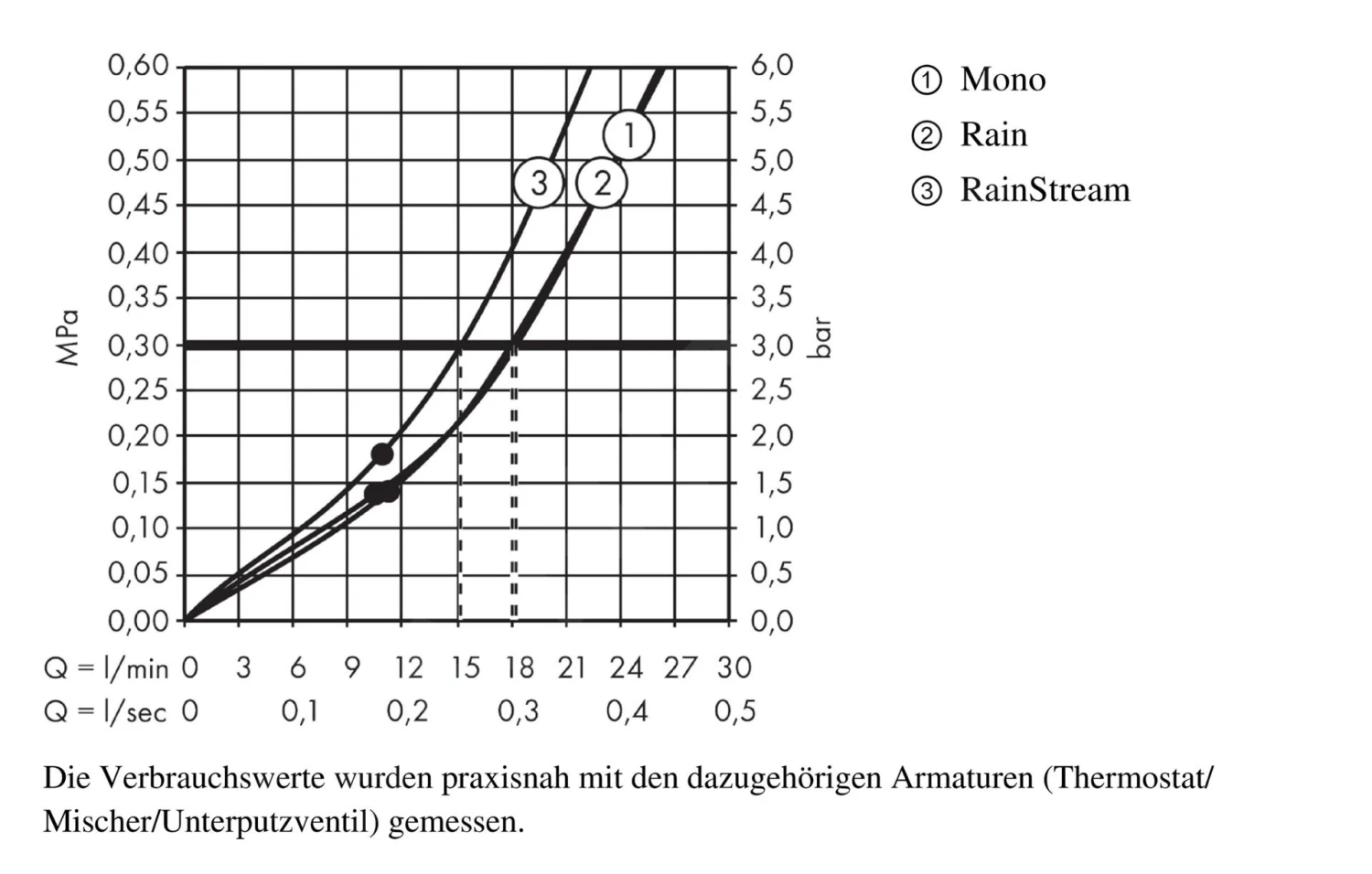 - doorstroming RainStream (bij 0,3 MPa): 15 l/ min