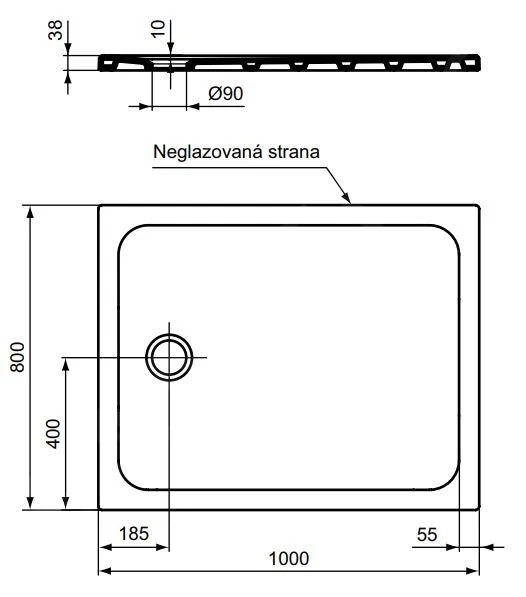 - één zijde van de douchebak (tegen de muur) is niet geglazuurd