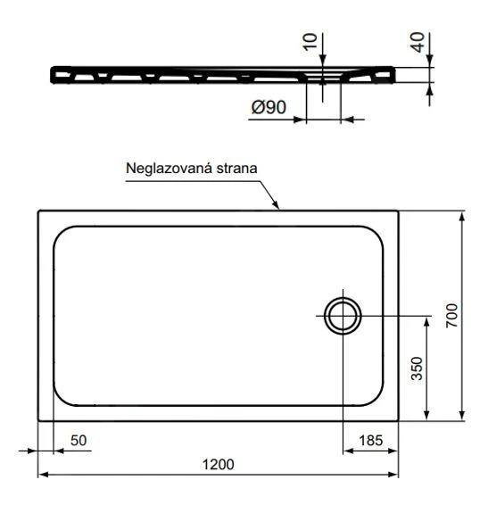- één zijde van de douchebak (tegen de muur) is niet geglazuurd