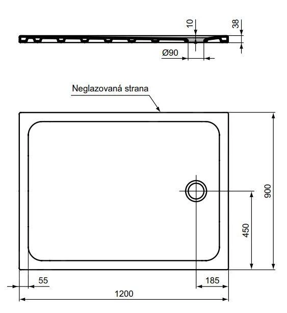 - één zijde van de douchebak (tegen de muur) is niet geglazuurd