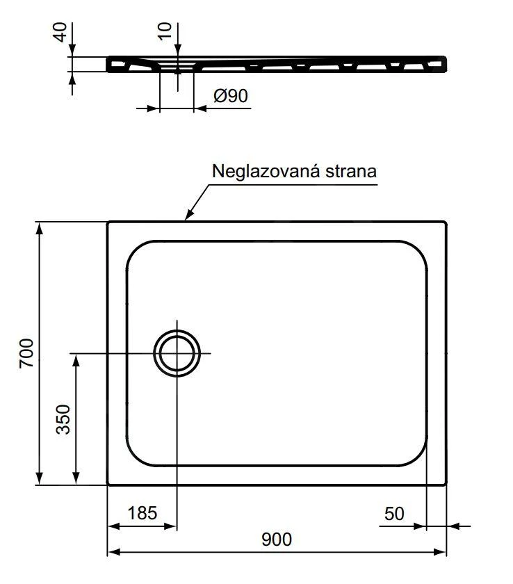 - één zijde van de douchebak (tegen de muur) is niet geglazuurd