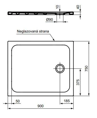 - één zijde van de douchebak (tegen de muur) is niet geglazuurd
