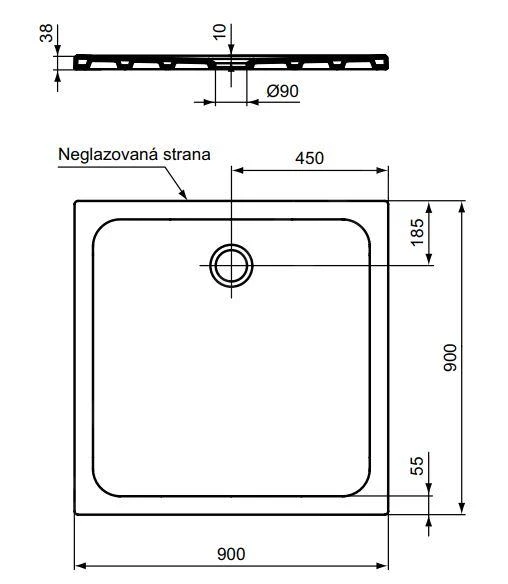 - één zijde van de douchebak (tegen de muur) is niet geglazuurd