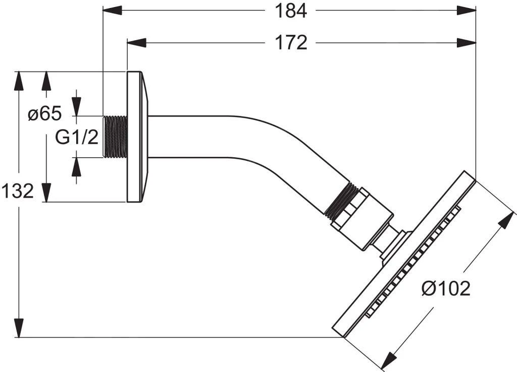 IdealRain hoofddouche, met gebogen wandaansluiting