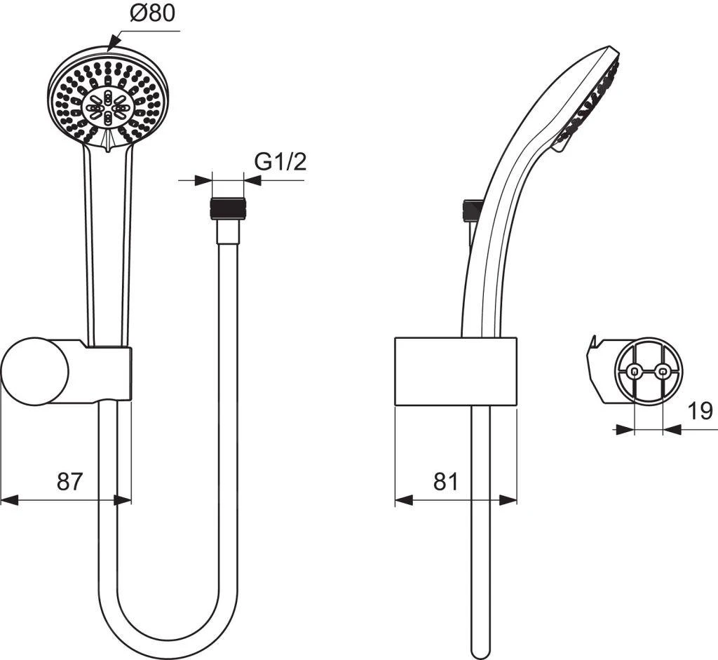 - handdouche: diameter 80 mm