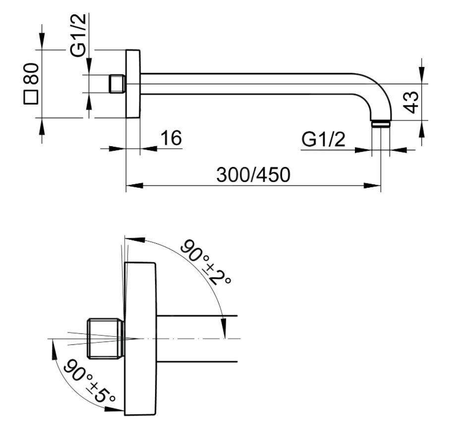 - mogelijkheid tot afstelling tot de wand (90° ± 2°)