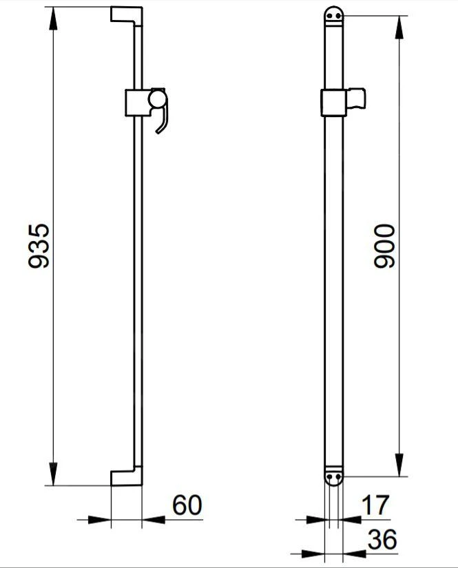 - hoogte douchestang 935 mm