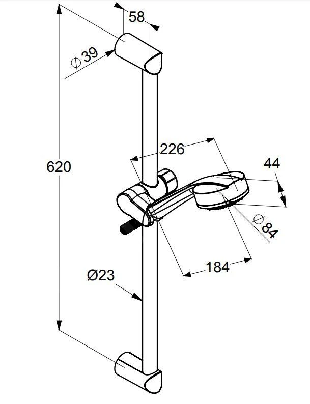 - douchestang lengte: 600 mm