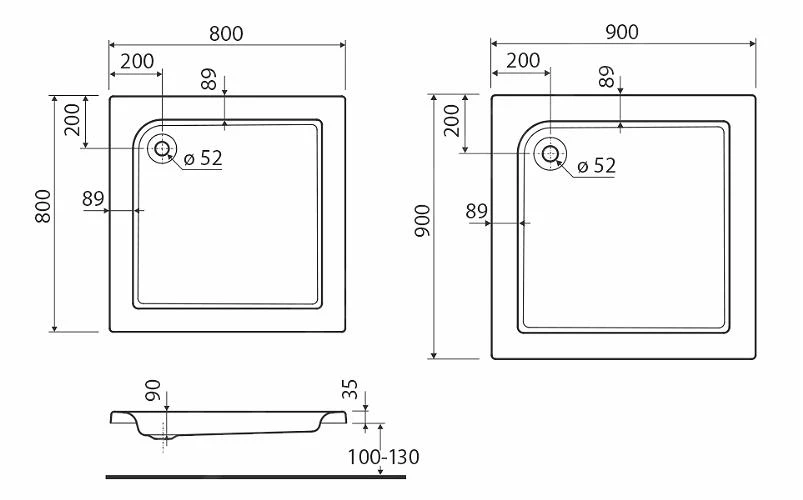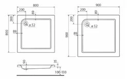 - diepte douchebak 90 mm