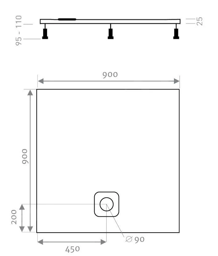 - afmetingen: 900 × 900 mm