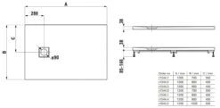 - afvoer aan de kortere zijkant, Ø 90 mm