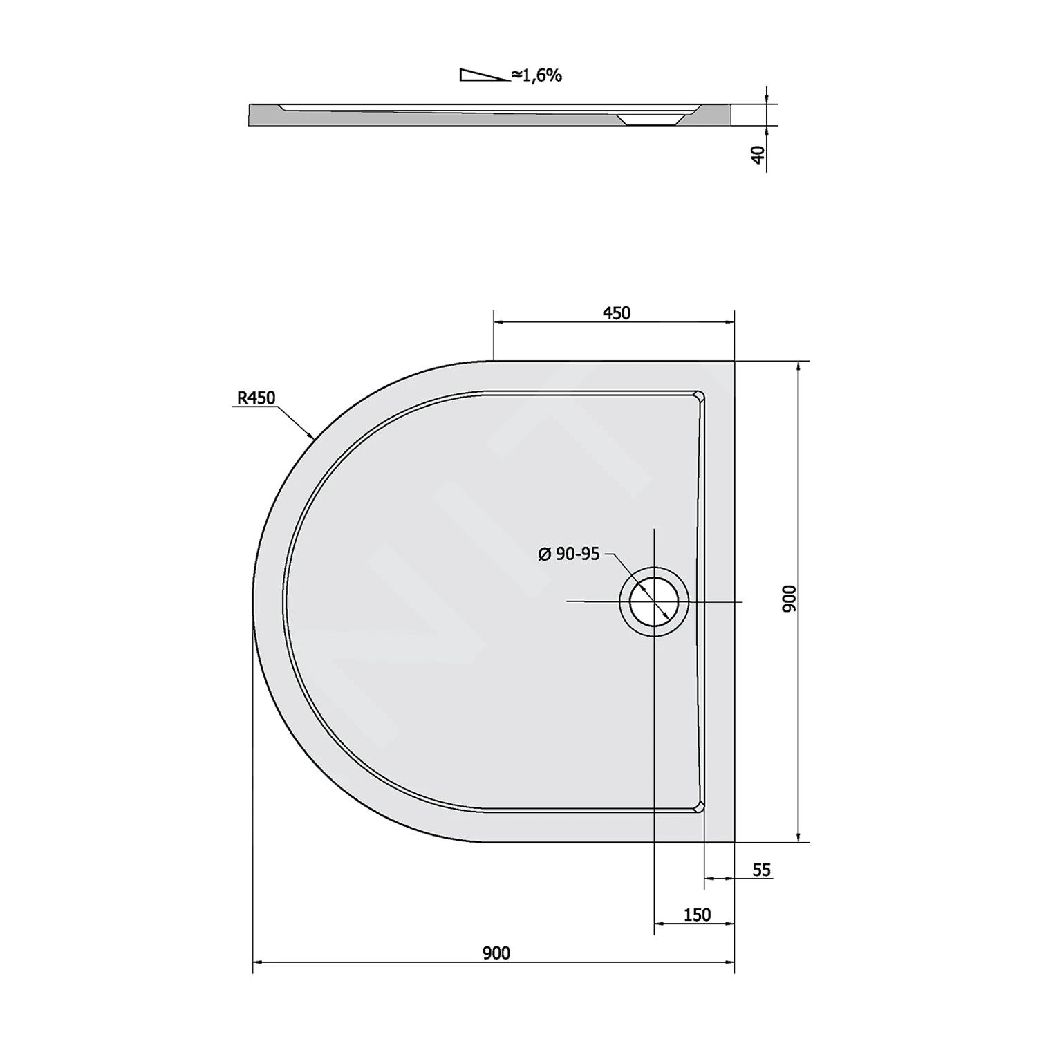 Halfronde douchebak ISA