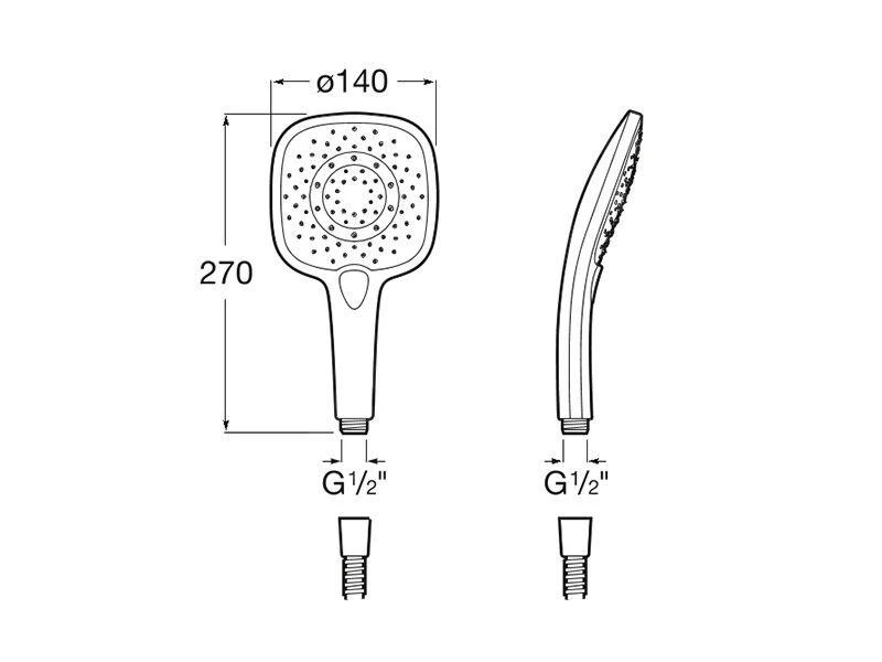 - Douchekop oppervlak: 140 mm