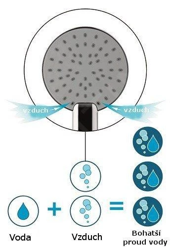 AIRmix – een nieuwe technologie met een systeem voor vermenging van lucht en water – bespaart water en geeft tegelijkertijd een gevoel van een grotere waterdoorstroming