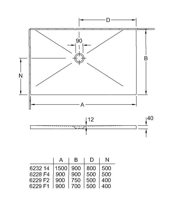 - de douchebak is afgezaagd aan 2 zijden; deze zijn niet geglazuurd en moeten met de linker- of rechterzijde tegen de wand worden geplaatst