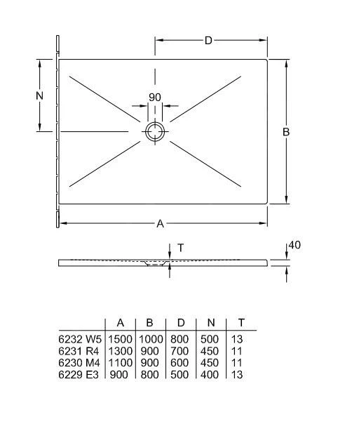 - de douchebak is afgesneden aan de korte zijde en moet met de afgezaagde, niet-geglazuurde zijde tegen de wand worden geplaatst